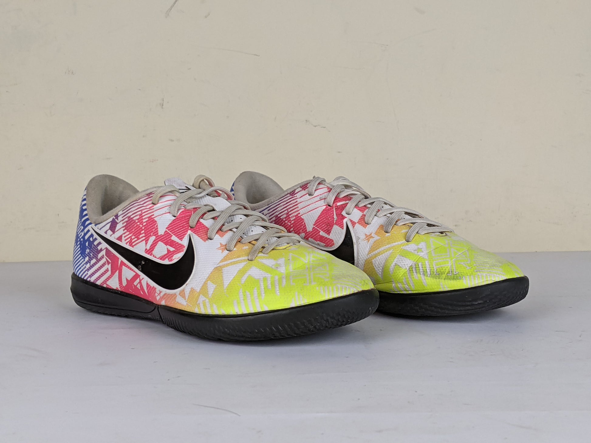 Nike Mercurial Vapor 13 Academy IC NJR Jogo Prismatico - White/Black/Racer Blue/Volt Kids are good quality Football shoes available online in Pakistan at Athletic Corner, your trusted source for original football boots in Pakistan. We deliver to Karachi, Lahore, Islamabad, and all across Pakistan. Shop now to get the top-rated kids football grippers and football cleats at the best price.